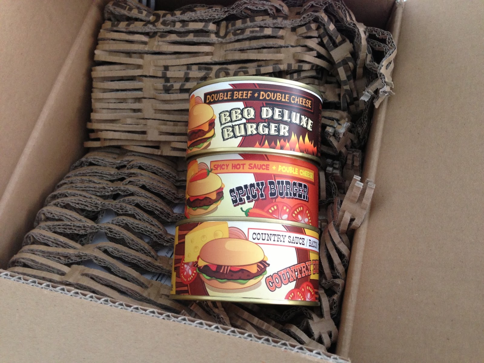 Ich habe für Oli und mich ein paar BP-5 Notrationskekse bei conserva.de bestellt (Islandrundreise, werden wir zwar höchstwahrscheinlich nicht brauchen, die Kekse halten aber bis ins Jahr 2022) und dort deren Dosenburger Probepaket für 6€ entdeckt. War klar, dass ich das mit in den Einkaufswagen legen musste. Nach Bezahlung mit Paypal war das Paket auch schon zwei Tage später bei mir im Büro.