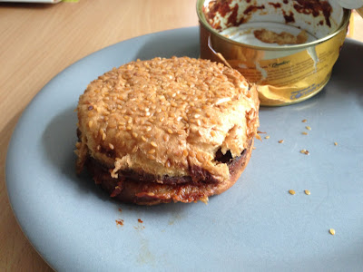 Nachdem ich im Dezember 2011 in der Auguste einen vergoldeten Burger gegessen habe, dachte ich ja immer, ich habe alles erledigt. Falsch. Es gibt noch viele interessante Burger zu essen. Heute gab es welche aus der Dose 🙂